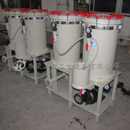 處理、金屬精飾、PCB蝕刻設(shè)備、制藥環(huán)保等,其主要作用是過濾化學(xué)溶液,能去除這些溶液中的不溶性顆粒雜質(zhì)。過濾機是