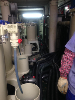 今天與生產部經理一同拜會深圳地區一個客戶。拜訪的目的,解決過濾機出口汽泡問題。到達現場后檢查發現如上圖。客戶的設備在安裝布置方面沒有進行規劃,現場空間足以按空間布局,但是客戶未按設備的先后順序進行安裝,導致了地面上管路凌亂不堪。