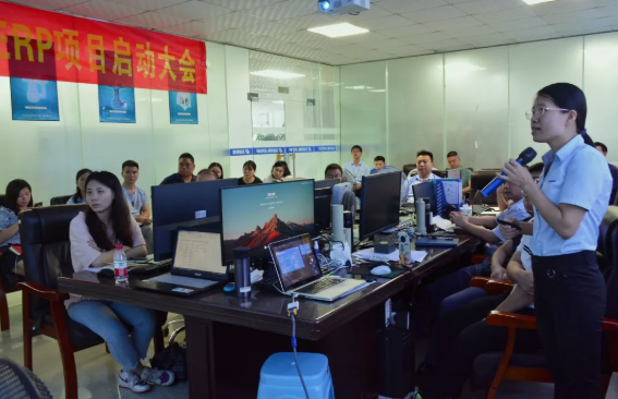 ERP實施小組組長容川作為本次會議的主持人介紹了金蝶ERP項目的背景、目標、規劃、價值和組織情況,并明確了項目實施計劃節點與策略。以信息化建設的“核心”為目標,使企業數據得以精細化管控,建立業務部門之間協同體系。使原有碎片化的信息關聯起來,通過電子表格變成信息集成化,以此來提高公司整體運作速度;采購、生產計劃的精確投放;降低零部件庫存成本;實現傳統管理到精細化管理的轉變。