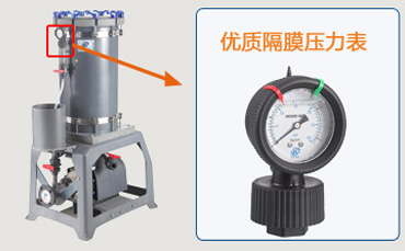 杰凱過濾機(jī)配備的壓力表是目前市面上隔膜壓力表。隔膜壓力表不僅比普通的過濾機(jī)壓力表穩(wěn)定性好,使用壽命長(zhǎng);特點(diǎn)是可以防止藥水泄漏,不像普通壓力表容易造成藥水泄漏。