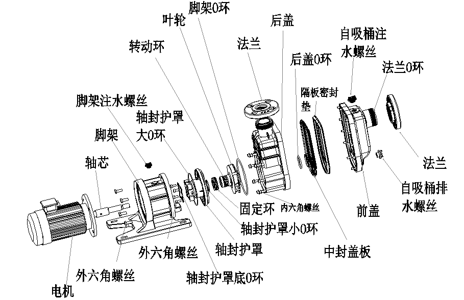 6、維護該泵時應注意幾個主要部位:A、滾動軸承:當長期運行后,軸承磨損到一定程度時,須進行更換。B、機械密封:機械密封在不漏液的情況下,一般不應拆開檢查。若軸承體下端洩漏口處產生嚴重洩漏時,則應對機械密封進行拆檢。裝拆機械密封時,必須輕取輕放,注意配合面的清潔,保護好靜環和動環的鏡面,嚴禁敲擊碰撞。