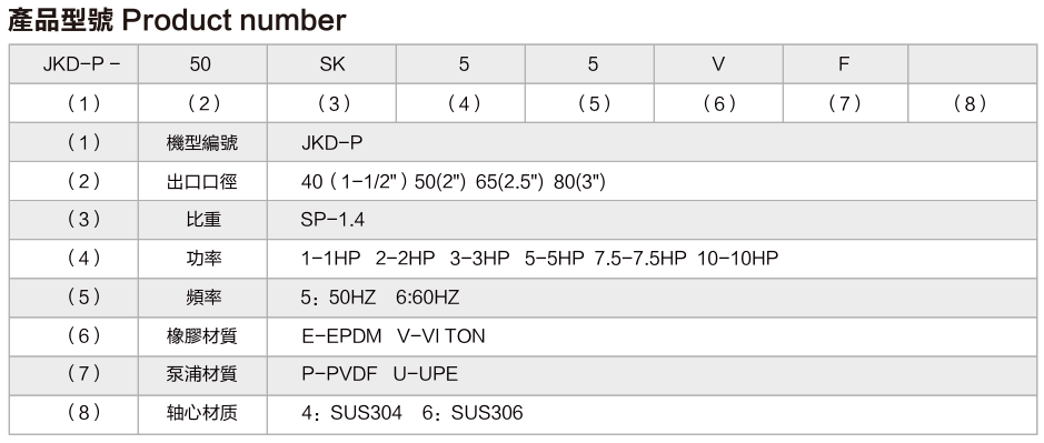 1、采用專用超高分子量UPE材質職稱,耐磨損,壽命長; 2、完全可空轉運行,絕不因空轉而損壞泵浦; 3、高效率葉輪配合創新型流道,壓力大; 4、驅馳定制電機,源于臺灣先進技術。