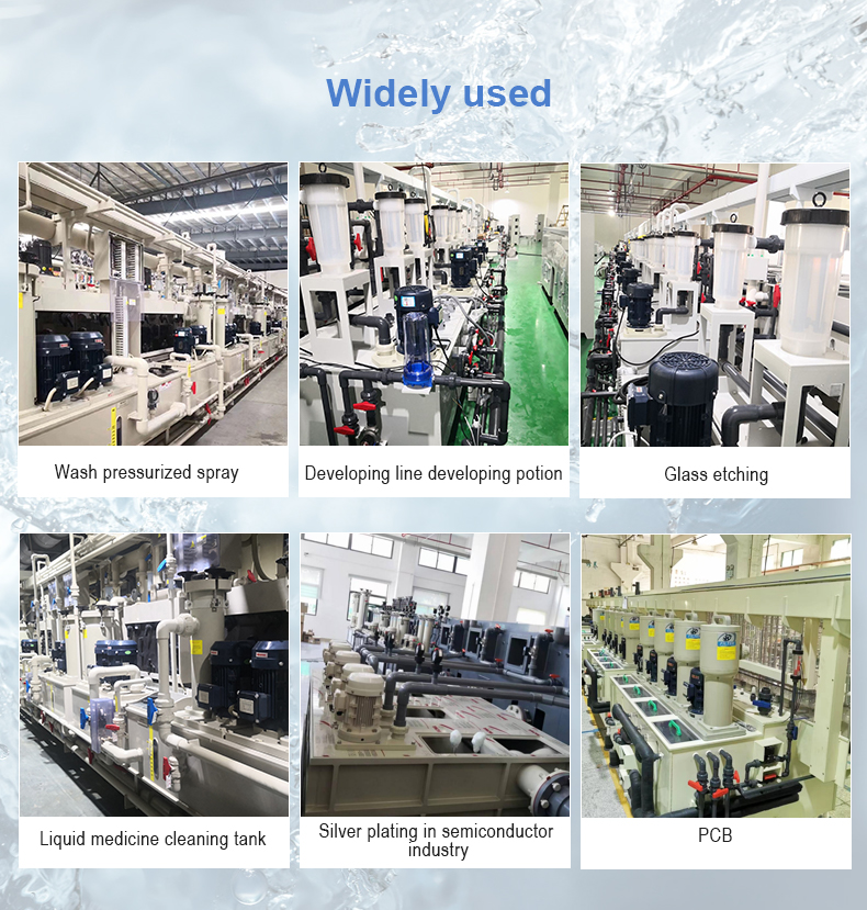 1、采用進口/上市企業優質原生料,大幅提高產品強度及耐腐蝕性; 2、特制的桿式軸封,配合SUS金屬或TI金屬一體軸,可耐空轉、防腐蝕,提高電機壽命; 3、創新型葉輪設計,一體成型工藝,效率高、性能穩定、壽命長; 4、獨特的反葉輪設計,減少水力損失,杜絕泄漏; 5、完全可空轉運行,絕不因空轉而損壞泵浦; 6、適合各種酸堿液體循環,適用于冷卻、噴洗、蝕刻、廢水處理等制程。